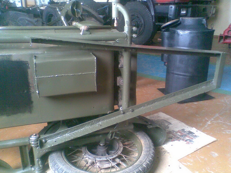 Отрезаем заднюю часть коляски и прикручиваем к раме коляски подрамник соединяющий раму газогенераторной установки с рамой коляски.