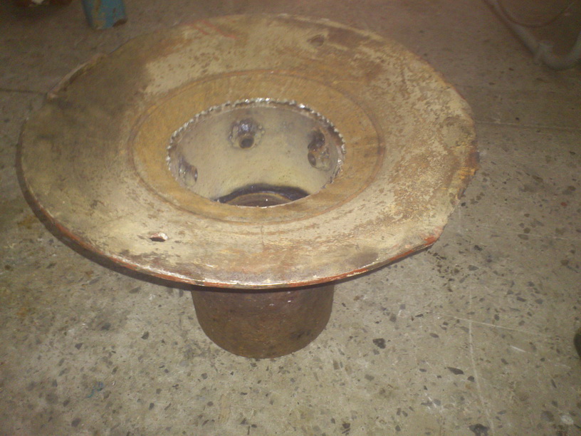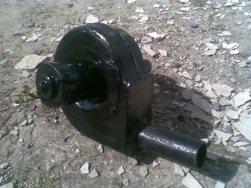В диске косилки делаем отверстие под толстостенную трубу и сваркой соединяем их. Из вырезанной части диска делаем сужение «активной зоны» диаметром около 80 мм и ввариваем его по центру трубы.
