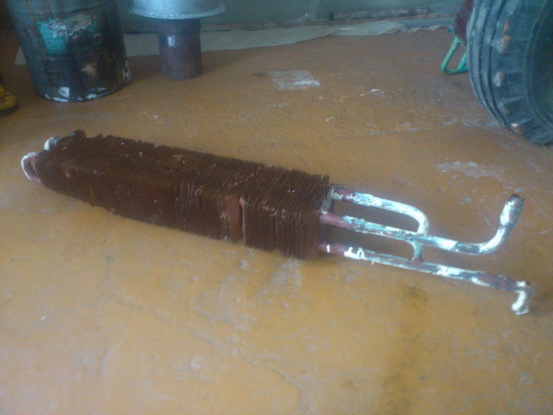 Из батареи делаем охладитель, предусмотрев отверстия для чистки и слива конденсата и соединительные фланцы.