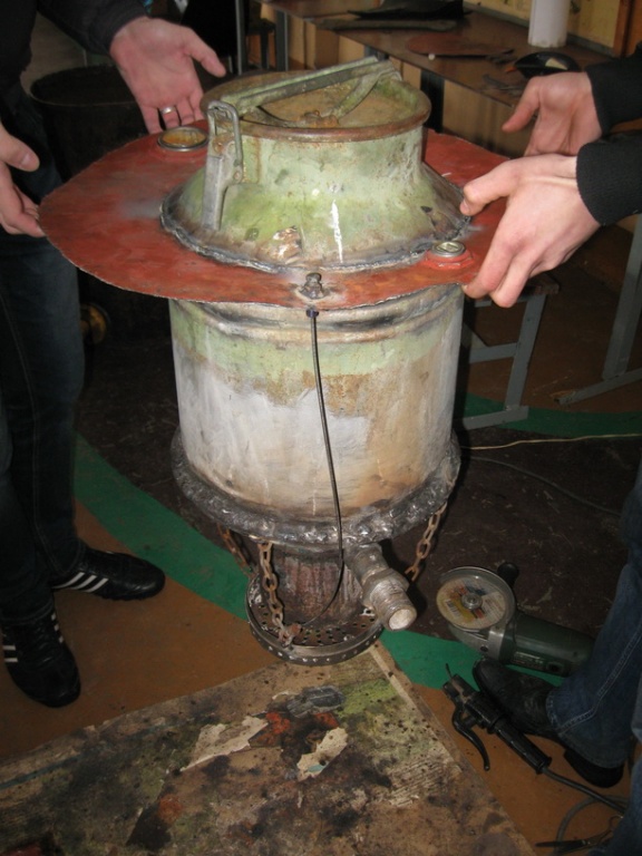Привариваем к бочку крышку и дно – газогенератор готов.