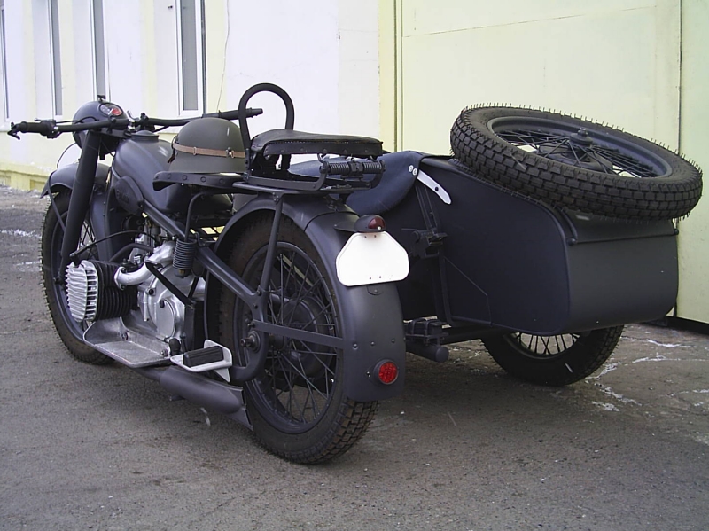 На конкретном(армейском) экземпляре, установлена довольно редкая на сегодняшний день коляска фирмы "ROYAL". Она необычна своей формой, способом соединения деталей между собой и рессорами, имеющими вид буквы "U", положеной на бок. На реставрацию ушло чуть больше года. Коляску ROYAL, разыскали и приобрели в Питере.