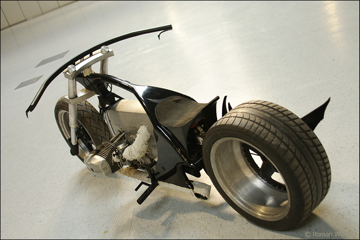 Понравился спланированный и продуманный конструкторскй и дизайнерской (хоть и спорный) подход, но сам моц принять не могу - активно протестую против нефункциональных выставочных понтометов а-ля Несс и компания. Прокатки на плацу мотошоу - не езда. Это не мотоцикл. На нем нельзя делать главного - ездить.