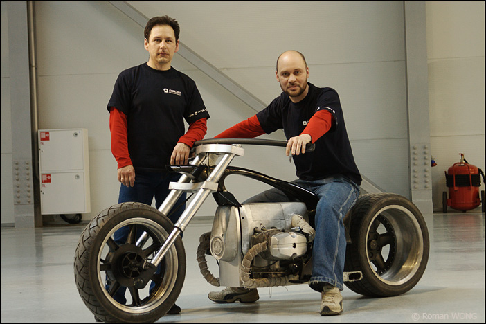 Зимой 2004-2005 годов неспеша начал прорабатываться проект. За дизайн и технические решения отвечал Олег «EASY», а за воплощение всех тех решений в металл – Володя «МАСТЕР». Внимание акцентировалось только на двигатель и колеса – без этого мотоцикл не поедет, а без остального – легко. Во главу проекта было поставлено условие, чтобы при виде едущего человека создавалось впечатление, что наездник оседлал двигатель, а не привычный глазу обывателя мотоцикл. Из вышесказанного вытекало, что мини഼Њализм просто обязан был диктовать условия.