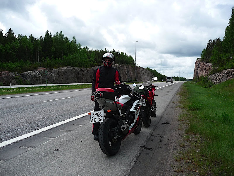В конце мая я уже совершал легкие поездки на мотоцикле, и, приехав в гараж, встретился с знакомым мотоциклистом Колей, который предложил поездку по Скандинавии, при этом добраться до границы Финляндии можно было на его джипе, довезя мотоциклы в прицепе — это гарантировало сохранности болтов в моих костях. Я, конечно, согласился. И писал каждый день заметки, которые предлагаю ниже, сохраняя лексику и настрой того момента, когда я их писал.