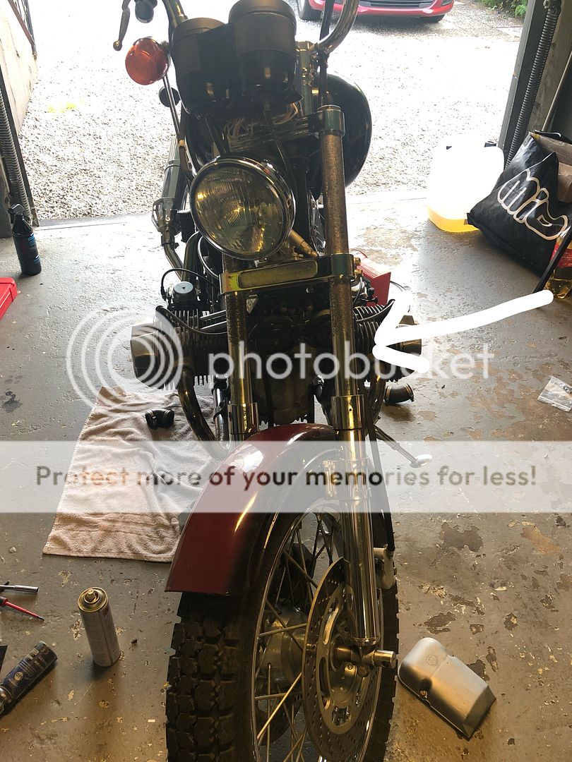 För Voyage-motorcykeln tillverkades olika framgafflar under olika år. Framgafflar för framhjulen med 2 bromsskivor. Framgafflar med 1 bromsskiva. Vad är din gamla gaffel? Bättre visa bilden.