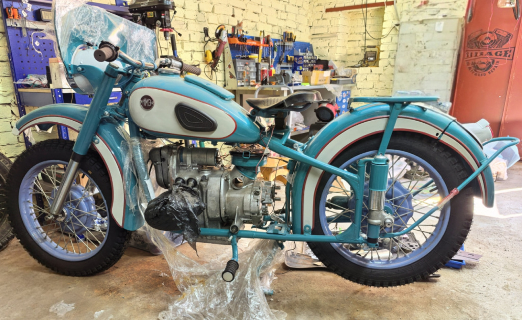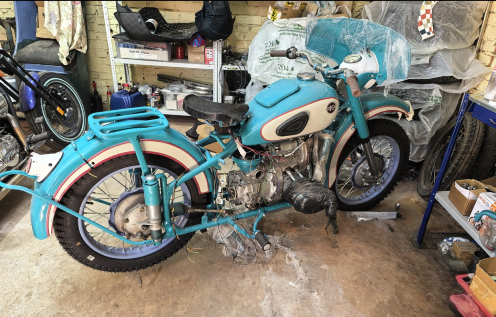Мотоцикл уже частично собран , комплектность на 95% точно, возможно не хватает какой-то мелочи, но глобально все есть. Рама, колеса и Всякая мелочь по самому мотику выкрашены порошком, в целом все кроме бака и крыльев покрыто порошковой краской, все песочили. Бак и крылья несколько слоев, уникальная раскраска, всё это под лаком. Требует покраски и восстановления коляска (корыто и рама), Всякая мелочь и рессоры покрашены. Мотик с документами, в довесок ещё запы по оппозитам(крышки грм, вторая рама коляски, и комплектующие к ней, оси, колеса, гбц родные м62) . Не удаётся выделить время до собрать и покрасить. Одна фотка только вставилась, остальное не лезет Цена 150 000,самовывоз.