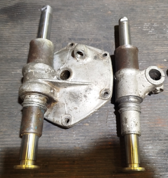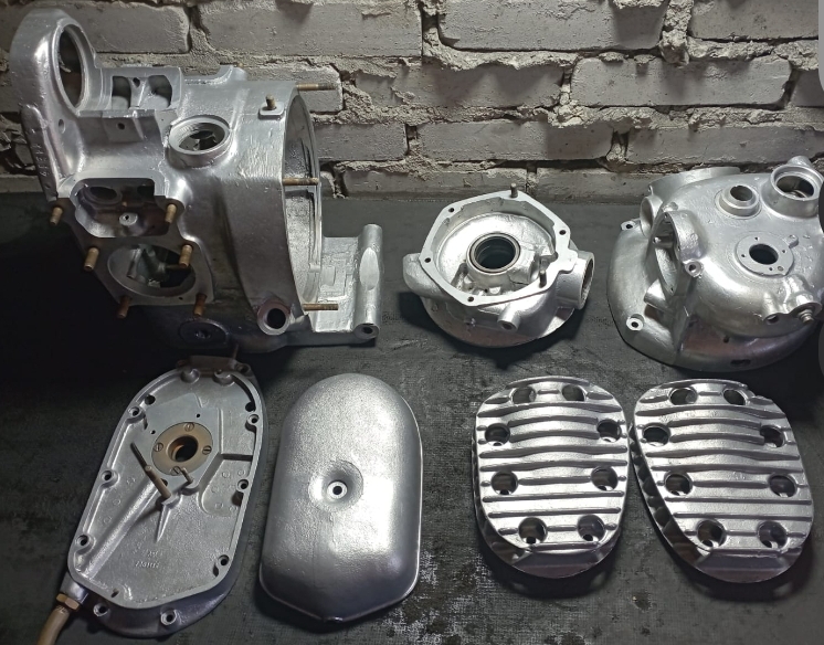 Приобрел поршни автотехнология, коленвал к750м с хранения, клапана МАН переточенные под родной сухарь. Дальше решил сделать вынужденную модернизацию, а именно заднюю и переднюю опору с Урала 650 и маховик с маслонасосом с него же, б/у, но вполне живые. Нашел пару не колотых голов. Отвез цилиндры в расточку, коленвал на правку биений.