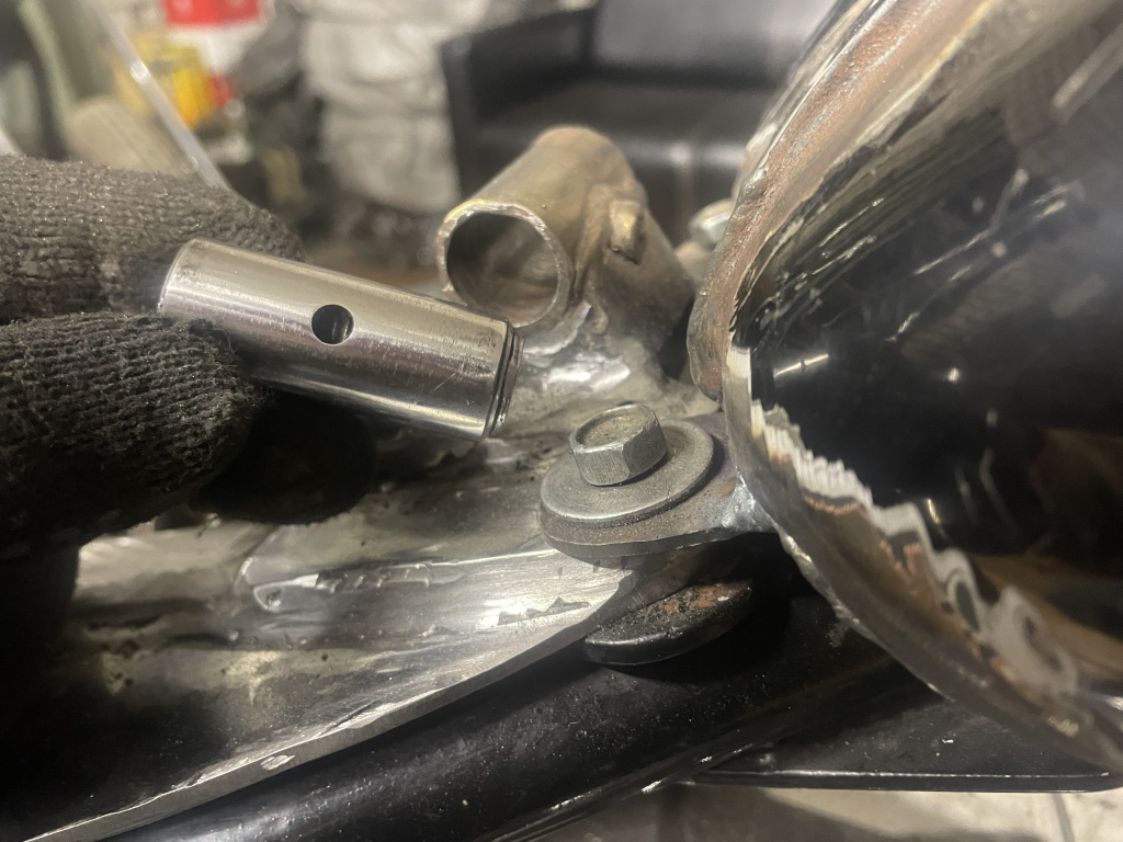 Для кастом сидушки было приобретено на помойке заднее седло-лягушка от М72, которое крепиться на багажник. В передней части на месте сайлент-блока металлическая втулка с отверстием под тавотницу, в которой внутри втулка с резьбой, наглухо забитой невычищаемой 50летней смазкой. Все посадочные убиты наглухо. Надо исправлять узел. Скорее всего пойду по простому пути - поставлю полиуретановую втулку. Но есть нюансы.