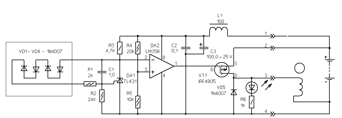 не ясно, зачем огород городить? схема оправдана на авто, где генер имеет собственную температуру, определяемую разве что нагрузкой на него, на оппозите же генер независимо от нагрузки горячий (догадался почему?), и этой побрякушкой его точно не остудишь, только испортишь и без того говеную зарядку. Лучче придумай, как заставить г-424 давать зрядку с холостых! ))))))