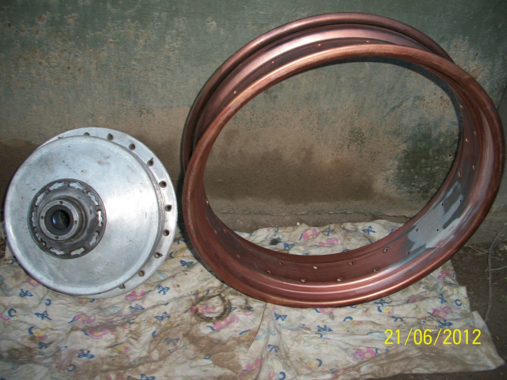 Есть колесо на 15, обод - запаска с жука, ступица точеная 40 спиц, под диск тормоз все в краске, мото резина старовата.